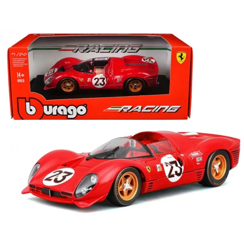 Revive la épica victoria de Ferrari en las 24 Horas de Daytona con este impresionante modelo a escala 1:24 del Ferrari 330 P4, producido por Bburago. Fiel al diseño original de 1967, esta réplica captura la esencia de uno de los autos más icónicos del automovilismo.