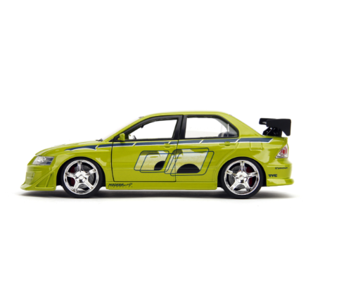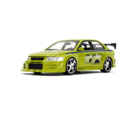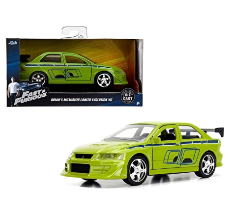 ¡Precisión japonesa con alma rebelde! El Mitsubishi Lancer Evolution VII de Brian O’Conner, tal como lo vimos en Rápido & Furioso 2, llega en escala 1:32 con todo el estilo tuning que marcó una generación. Fabricado por Jada Toys, este modelo diecast combina velocidad, diseño urbano y espíritu cinematográfico