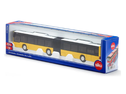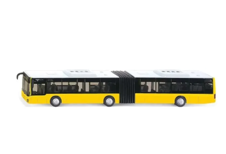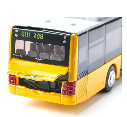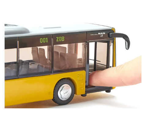 Maqueta de bus muy detallada según diseño original de MAN Lions City a escala 1:50. Ruedas con oruga de goma. 2 ejes, segundo eje con neumáticos gemelos. Las 2 puertas de la derecha se abren. El capó del motor se abre en la parte trasera. Vidrios polarizados. Espejo retrovisor independiente y parrilla del radiador integrada. Luces delanteras y traseras de plástico. Techo con aire acondicionado.