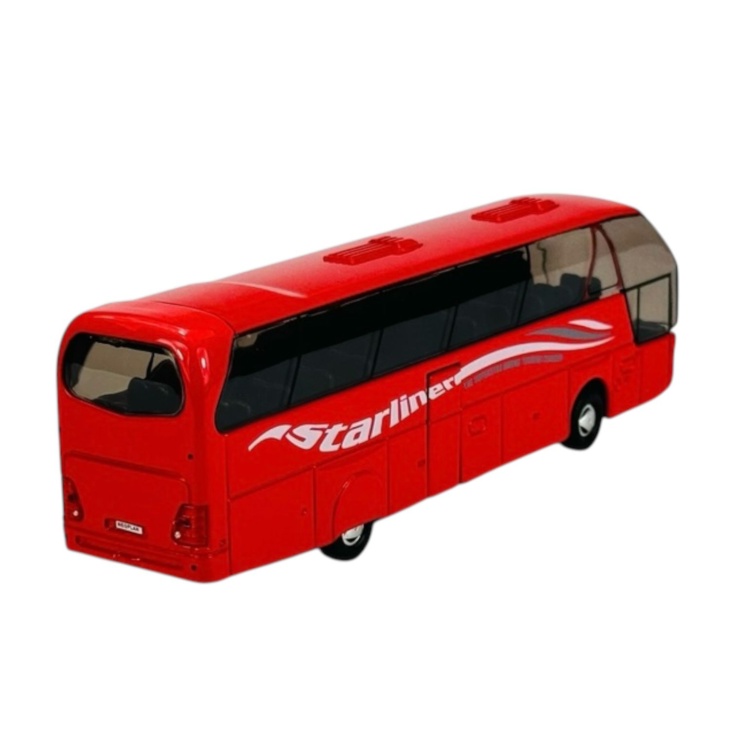 Una joya del diseño automotriz en miniatura. Este modelo a escala 1:64 del icónico Neoplan Starliner 4×2 captura la esencia de uno de los autobuses turísticos más elegantes del mundo. Fabricado por Welly, reconocido por su precisión y calidad y detalles realistas