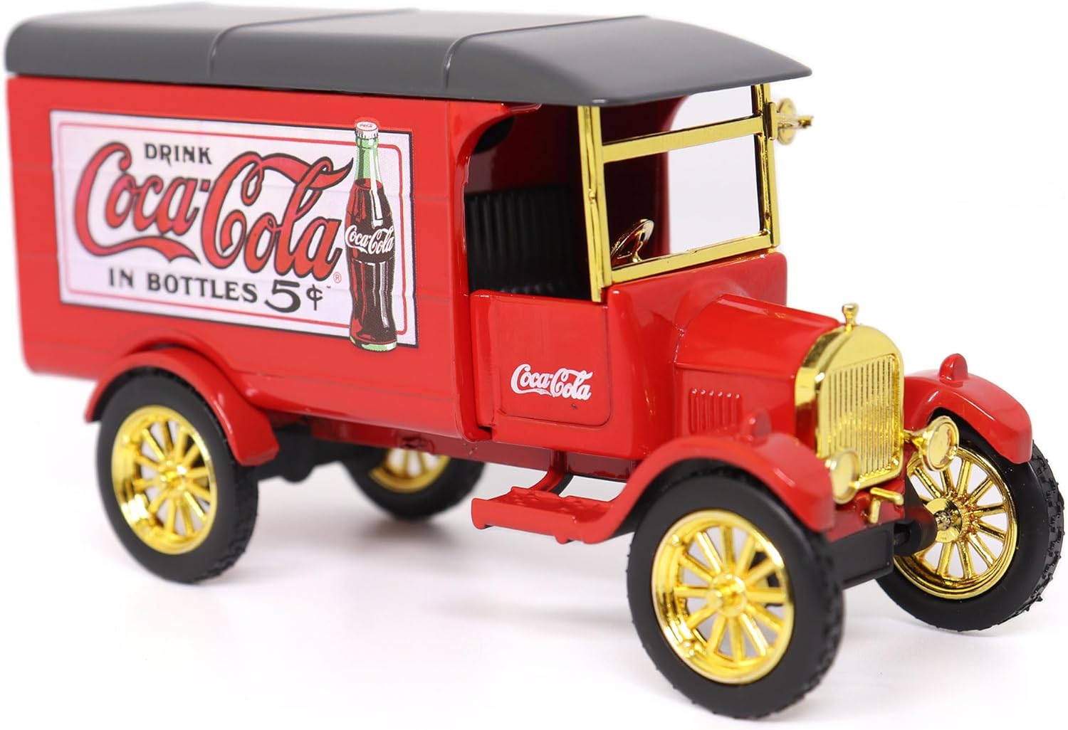 Fiel reproducción del icónico modelo Ford TT de los años 20, el primer camión de carga de la marca, utilizado por Coca-Cola para sus repartos en la época dorada de la publicidad clásica.