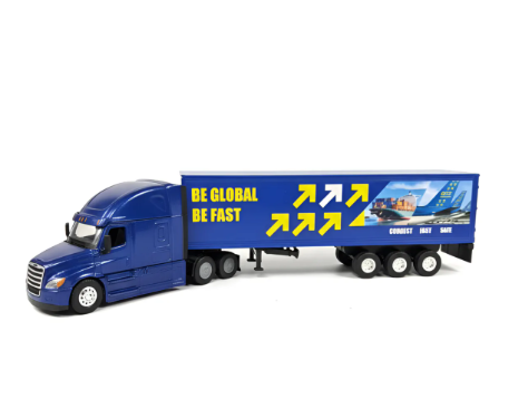 Potencia, precisión y presencia en miniatura. Este modelo a escala 1:64 del icónico Freightliner Cascadia 6×4 con semirremolque BE GLOBAL, fabricado por Welly, captura la esencia del transporte de carga moderno con un nivel de detalle que fascina tanto a coleccionistas como a entusiastas del mundo automotor.