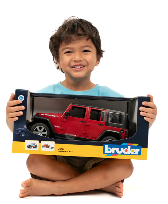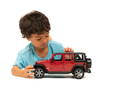 El Jeep Wrangler Unlimited Rubicon no sólo es un vehículo todo terreno con una óptica atractiva, sino que dispone también de numerosas funciones que permiten una dosis de diversión casi ilimitada. Además del techo de segmentos extraíble de 2 piezas, el capó de motor, la puerta trasera y las cuatro puertas se pueden abrir. Naturalmente hay espacio disponible para cuatro figuras bworld BRUDER en el vehículo. Como alternativa a la ocupación total se puede extraer el asiento trasero para poder alojar en el área de carga los accesorios de elementos de unión estándar de BRUDER. La barra de dirección adicional sirve para dirigir fácilmente a través de la ventana de techo y se puede guardar en el suelo del vehículo si no está en uso. Los ejes tienen una suspensión todo terreno y los neumáticos perfilados tienen llantas atractivas en óptica de SUV. Gracias al punto de inserción frontal, en el que se puede sujetar p. ej. el torno de cable que se puede adquirir adicionalmente, y al enganche de remolque extraíble, las posibilidades de ampliación en el mundo BRUDER no tienen límite.