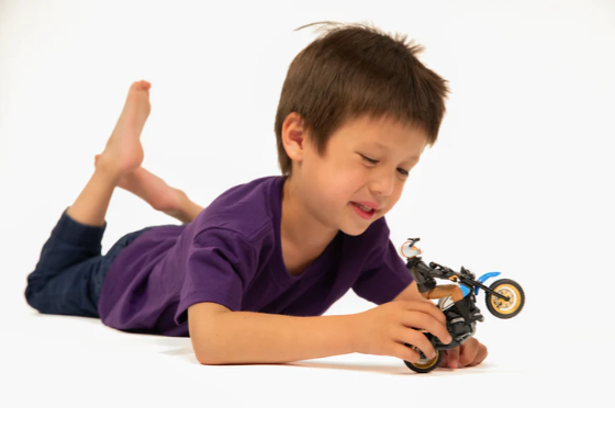 Como novedad en su gama, BRUDER presenta esta impresionante motocicleta. Los elementos de diseño como las ruedas de radios metálicos, el tubo de escape o los elementos de motocross se adoptaron con gran fidelidad de detalles y, a la vez, el modelo se equipó con funciones como la horquilla dirigible o el eje trasero suspendido. Este bólido es conducido por una figura bworld vestida con ropa auténtica de gran estilo y casco y guantes a juego.