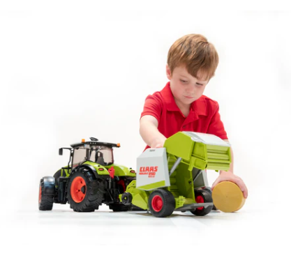 La rotoempacadora Claas Rollant 250 es abatible con Pick-up y se acciona mediante ruedas direccionales. La tapa lateral y el parte trasera con oprimidor se pueden abrir. Las pacas que están dentro se expulsarán automáticamente al accionar el balancín del depósito. Gracias a un acoplamiento de remolque se puede colocar la encintadora de pacas (encintadora de pacas no incluida en el volumen de suministro). En el volumen de suministro se incluye una paca redonda y los neumáticos perfilados completan el conjunto.