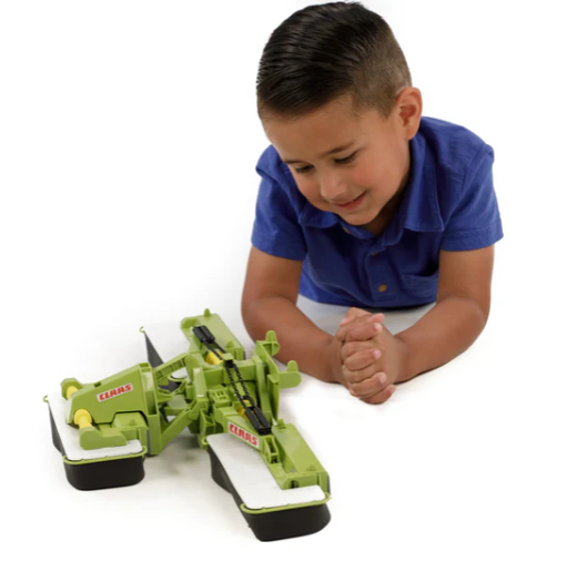 Los agricultores dedicados fundamentalmente a la cría de ganado necesitan equipos robustos para la recolección del forraje, que ofrezcan altas prestaciones día tras día. Entre los principales proveedores mundiales de sistemas para la recolección de forraje destaca la empresa CLAAS, cuyos productos ofrecen respuesta a los retos más difíciles y cuya calidad no se resiente, ni siquiera a la larga: características que, en pequeño, se encuentran también en los juguetes de la casa BRUDER. Nada mejor que convertir una barra segadora de grandes superficies tan impresionante en un juguete igual de impresionante, que convence por sus muchas funciones realistas y la fidelidad de los detalles. Por ello, sus tres barras segadoras están alojadas sobre cojinetes oscilantes, pudiendo así compensar las irregularidades del suelo. La barra segadora dispone de ejes del acondicionador giratorios. La barra segadora triple es divisble para su empleo frontal y lateral en el tractor con el dispositivo mediante el cual se pueden plegar hacia arriba las barras segadoras laterales para el transporte. Con el Claas Jaguar se utiliza en posición completamente frontal con ayuda de un adaptador incluido, para el transporte por carretera se pueden girar y elevar las barras segadoras hacia delante. Con esta maquinaria agrícola BRUDER vuelve a poner de manifiesto la gran sofisticación técnica de sus productos, los cuales enseñan a los niños que juegan con ellos el funcionamiento de sus hermanos ejemplares de una forma fascinante.